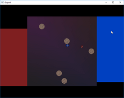The fifth and final day is over. Technically, it ended 3 hours ago, but I had to finish what I set out to. The UI scales correctly now, maintaining a perfect 16:9. The menu works perfectly -- we even have a controls screen! It took embarrassingly long to get the text working. We also have color-coded health bars on the sides. The blue one is upside down, which was an accident, but I kinda like it better, so it will remain upside down. It took a long time to make those gifs, because I'm still bad at this game (mostly because I keep shooting the wrong hook since I can't tell which way the pod is facing).